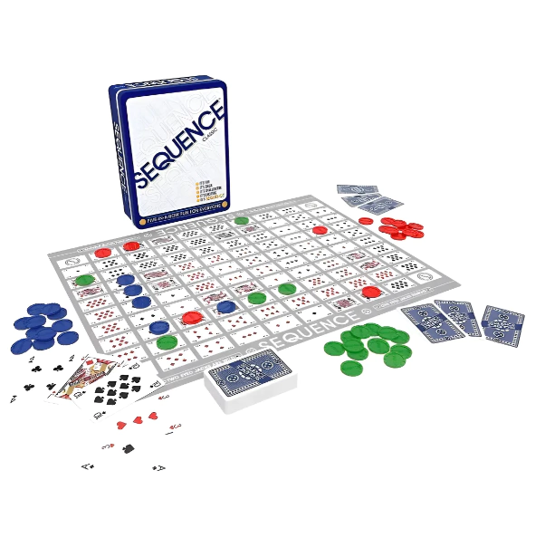 Sequence es un juego de estrategia en el que deberás aprender a bloquear a tus oponentes y eliminar sus fichas para que no hagan Sequence antes que vos. Se puede jugar de forma individual o en equipos.